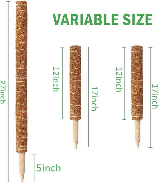 Moss Pole, 27 Inch Moss Poles - 2Pcs 17 Inch Plant Stakes Moss Sticks for Monstera Indoor Creepers Plant Support Extension Climbing Plants